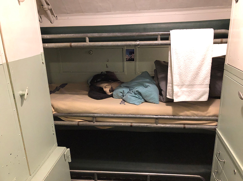 USS Cobia is a major exhibit at the Wisconsin Maritime Museum, requiring thousands of man-hours of maintenance and restoration. Cobia was dry-docked in 1996 and went through an intensive interior restoration over the next few years. Staff and volunteers focused on returning the submarine to her 1945 look. In 1998, the Museum was awarded a grant from the Wisconsin Department of Transportation’s Statewide Transportation Enhancement Program (STEP). This grant helped underwrite interior restoration that included installation of WWII era flooring, bunks, metal trim, and crew lockers.